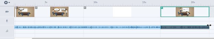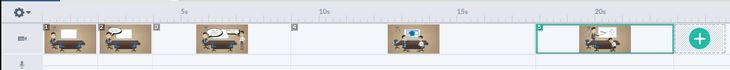 Au niveau des scènes, il est possible de jouer sur la durée d’une scène, il suffit d’élargir ou de diminuer la vignette de la scène dans le story-board, et le temps s’adaptera. Voyez par vous-même :