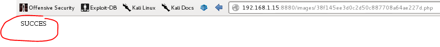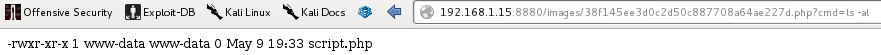 Donc nous avons bien confirmation que les images sont renommées et portent le nom de leur hash complet (nom+extension) après ce renommage. Il nous reste donc plus qu'à obtenir le hash MD5 de "script.png.php" puis d'aller sur http://cible/images/hash pour voir notre script, c'est parti !