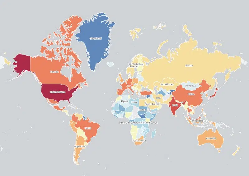 Si l'on regarde la carte publiée par The Shadowserver Foundation, nous pouvons constater qu'il y a plus de 4 400 équipements Fortinet vulnérables en France, au même titre qu'au Canada, à quelques équipements près. En Suisse, il y a 1 700 équipements vulnérables, tandis qu'on en compte approximativement 1 500 pour la Belgique. À titre de comparaison, il y en a plus de 24 000 aux États-Unis.