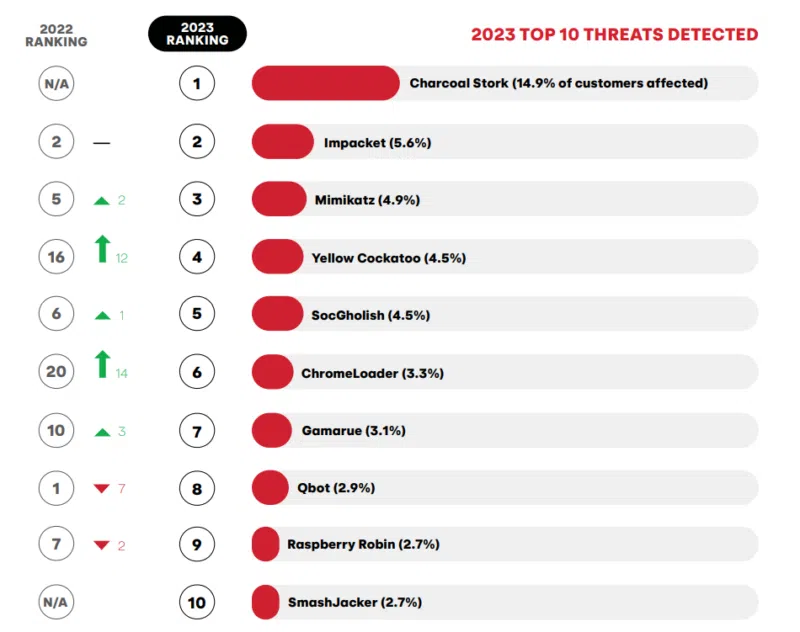 La menace qui se démarque le plus, au-dessus de l'utilisation d'outils classiques d'attaque comment impacket et mimikatz, est CharCoal Stork.