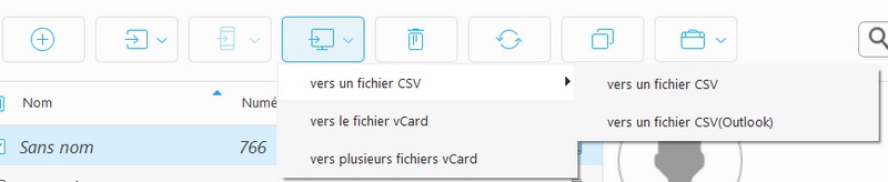 La partie contact permet d'exporter les contacts vers un autre appareil mais également vers son PC. L'export est possible en plusieurs formats : CSV et le format vCard adapté pour les contacts. Quant aux SMS, ils peuvent être exportés dans différents formats : CSV, HTML et TXT. Cependant, le transfert d'un appareil à l'autre n'est pas proposé dans cette section, ce qui est dommage.