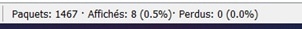 | Le nombre de paquets total, le nombre de paquets affichés ou bien si Wireshark a drop des paquets avec les champs perdus | |