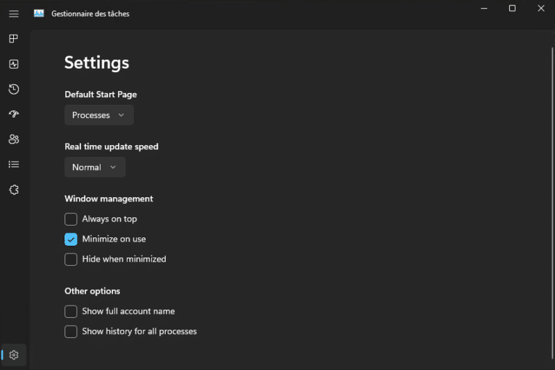 Au-delà de sa nouvelle interface, qui reprend les codes de Windows 11 et qui s'adapte au thème général du système, le nouveau Gestionnaire des tâches intègre de légers changements. Il est et restera l'un des outils phares du système notamment lorsqu'il s'agit de s'intéresser aux processus (même s'il y a des outils pour aller beaucoup plus loin) !