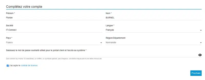 Vous devrez alors compléter certaines informations, comme votre nom, votre prénom, etc... comme le montre l'image ci-dessous.
