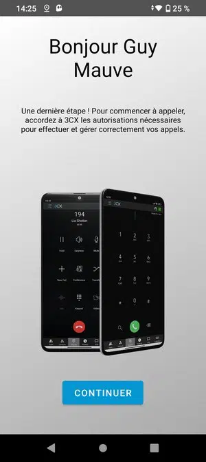 À partir de l'application mobile 3CX, l'utilisateur Guy peut aussi passer des appels audio ou vidéo. Il est également possible de transférer un appel, soit à l'aveugle ou supervisé et définir un statut.