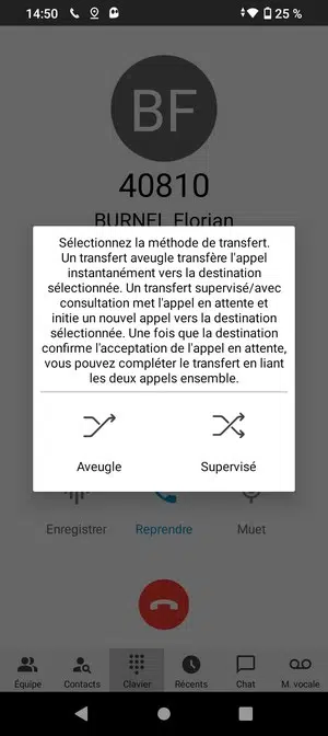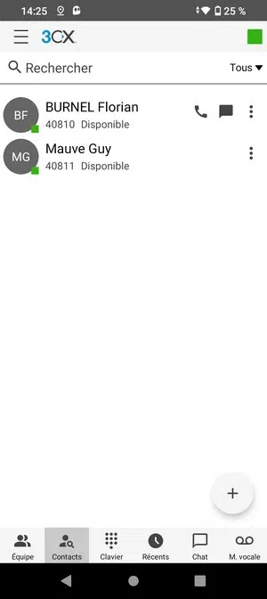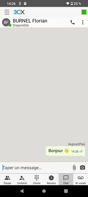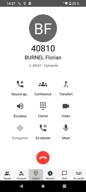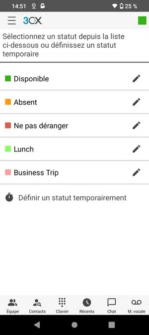 L'application mobile donne accès au répertoire des contacts, à la possibilité de composer un numéro, ainsi qu'au chat et à la messagerie vocale. Le statut de chaque utilisateur est également visible, ce qui est pratique pour savoir si un collègue est disponible ou occupé avant de songer à l'appeler.