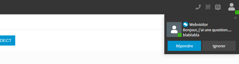 Le fait de cliquer sur "Répondre" permet d'être redirigé vers la fenêtre de chat où la conversation peut être engagée.