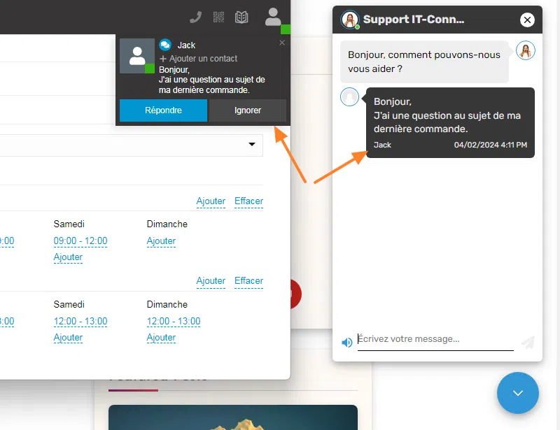 De son côté, Guy reçoit une notification et il peut prendre le relai sur la discussion :