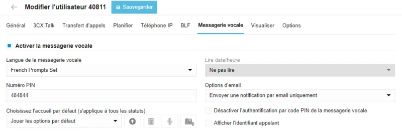 Par ailleurs, chaque compte utilisateur est associé à un ensemble de paramètres pour la messagerie vocale, 3CX Talk (liens directs pour le chat / une réunion avec cet utilisateur) ou encore les stratégies de transfert d'appels en fonction du statut de l'utilisateur.