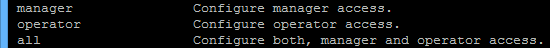 o Manager : Contrôle total. Il peut effectuer des changements de configuration et utiliser l’intégralité des commandes.