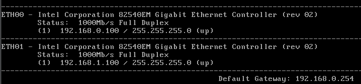 Nous arrivons sur ce menu ou nous voyons nos deux interfaces : ETH00 et ETH01