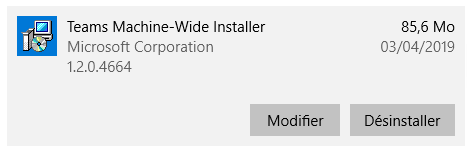 Ensuite, appliquez votre GPO sur l'OU qui contient le(s) poste(s) ciblé(s). Lorsqu'ils auront récupérés la GPO et installé le MSI, la liste des programmes contiendra "Teams Machine-Wide Installer" :