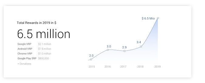 En 2010, Google a lancé son programme VRP (Vulnerability Reward Program) afin de rémunérer les hackers qui découvrent des failles informatiques dans les outils et services de la firme. Dix ans plus tard, Google annonce avoir versé 21 millions de dollars sur cette période. Rien que pour l'année 2019, Google a versé 6,5 millions de dollars, ce qui est un record.