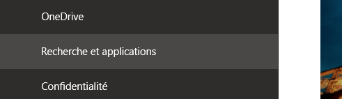 Sur la partie de gauche, cliquez sur "Recherche et applications" parmi les choix proposés.