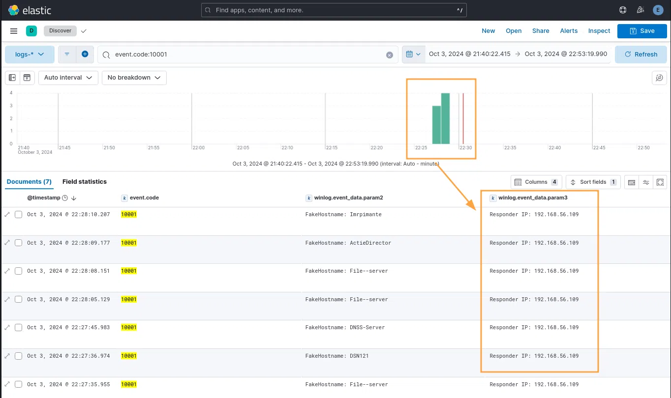Voici, à titre d'exemple, la visualisation de l'évènement 10001 sur un SIEM ELK (ElasticSearch, LogStash, Kibana) :