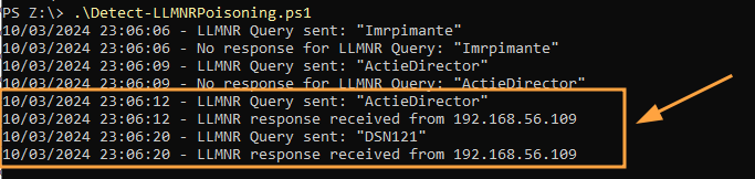 Write-Output "$(Get-Date) - LLMNR response received from $($LLMNRResponse.IPAddress)"
