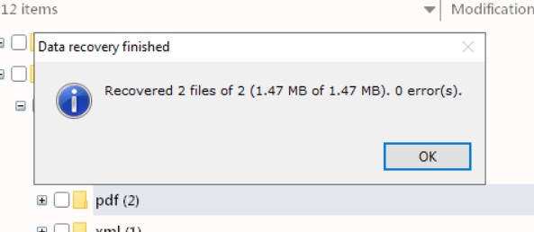 Les résultats de la recherche sont positifs, car j'ai pu récupérer l'intégralité de mes fichiers. À noter que j'ai peu utilisé mon PC entre le moment de la suppression et le moment de la récupération de données.