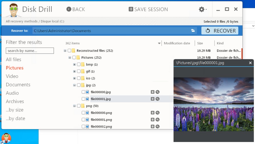 J'ai repéré quelques fonctionnalités annexes intéressantes au sein de Disk Drill :