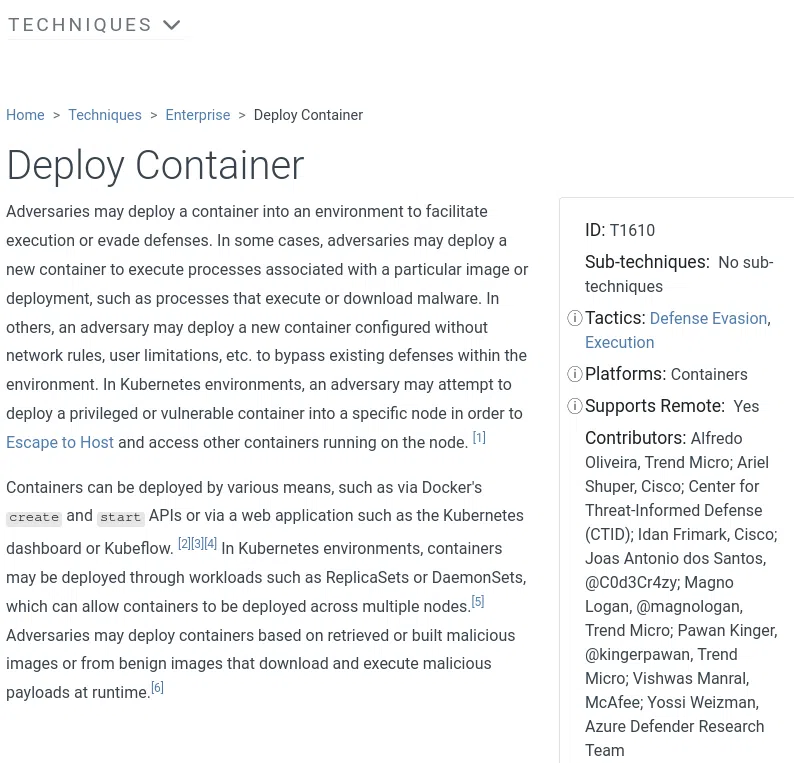 La particularité de cette matrice "Containers" est qu’elle contient uniquement les techniques relatives là ’exploitation de Docker et des technologies de conteneurs.