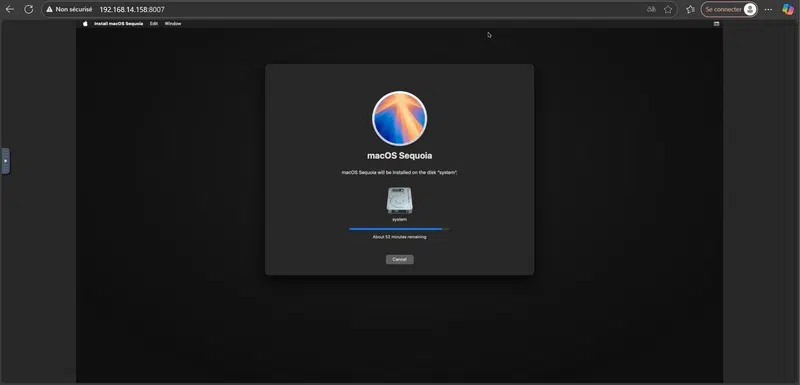 J’ai voulu faire la manip avec dockur macos dans un docker sous windows 11.