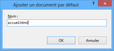 Indiquez le nom que vous souhaitez pour le document par défaut, par exemple « accueil.html ».