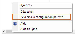 Si vous faites clic droit dans la partie centrale de la console et que vous faites « Revenir à la configuration parente », toutes les entrées définies localement pour ce site seront supprimées et il ne restera que les entrées héritées. Ce qui correspond aux entrées définies au niveau du serveur IIS et du répertoire virtuel (par défaut nommé « Sites »).