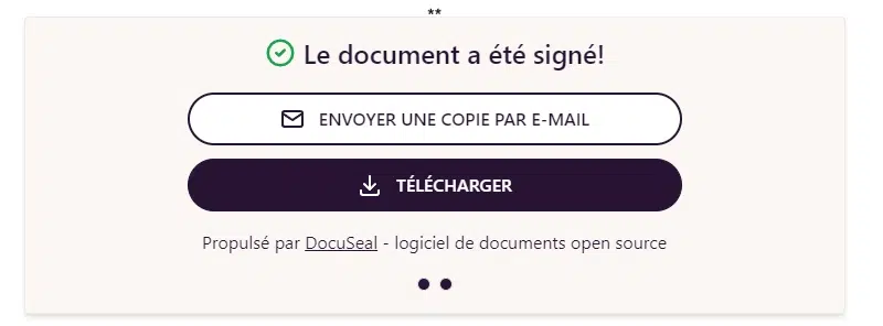 Lorsque le document a été signé, il est possible de le télécharger ou d'en recevoir une copie par e-mail.