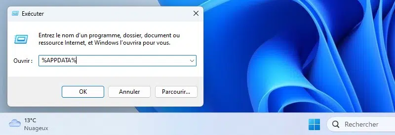 Vous pouvez copier-coller ce chemin dans la fenêtre "Exécuter" accessible via le raccourci "Windows + R" ou dans la barre d'adresse de l'Explorateur de fichiers.