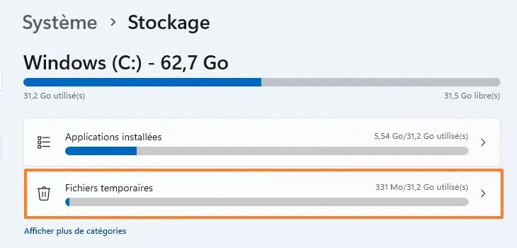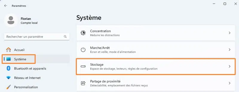 Windows 11 intègre un gestionnaire de stockage accessible via les "Paramètres" en allant dans "Système" puis "Stockage".