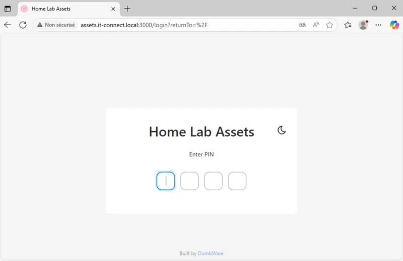 Une fois cette commande exécutée, Docker va télécharger l'image de DumbAssets et construire le conteneur. Ensuite, l'application sera accessible à l’adresse suivante (enregistrement DNS à créer par vos soins) : http://assets.it-connect.local:3000.