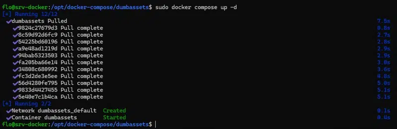 Nous pouvons maintenant démarrer le conteneur avec Docker Compose. L’option -d permet de le lancer en arrière-plan.