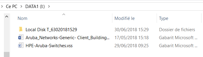 Lorsque deux partitions sont fusionnées, le contenu de la deuxième partition sera stocké dans un dossier spécifique, comme ceci (pour la partition T) :
