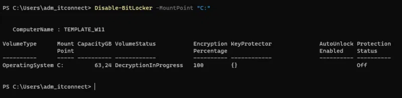 Nous allons maintenant effectuer un SYSPREP sur la machine Windows 11 24H2 que nous souhaitons dupliquer. Mais, avant cela, nous devons désactiver BitLocker ! En effet, cette nouvelle version de Windows 11 vient avec BitLocker préconfiguré, ce qui va poser un problème : le SYSPREP ne fonctionnera pas.