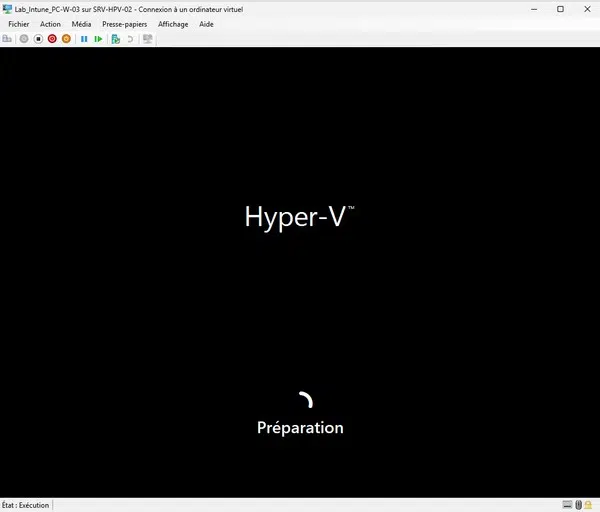 Dans cet exemple, une machine virtuelle sous Hyper-V est utilisée. Cela peut être intéressant pour préparer un modèle de machine virtuelle puisque le disque dur virtuel pourra être dupliqué à souhait suite à cette opération. Vous pouvez personnaliser cette image, via l'installation d'applications et un paramétrage selon vos besoins.