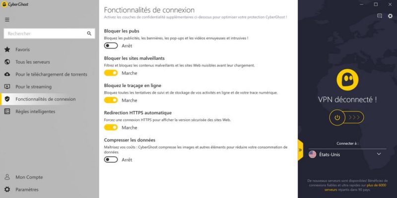 Au-delà des fonctionnalités classiques, voici quelques avantages de la solution CyberGhost VPN :