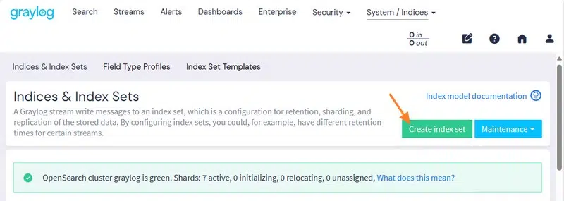 À partir de Graylog, cliquez sur "System" dans le menu puis sur "Indices". Au sein de la nouvelle page qui s'affiche, cliquez sur "Create index set".