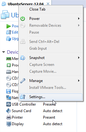 Une fois que la VM est éteinte, faites clic droit dessus puis cliquez sur « Settings ».