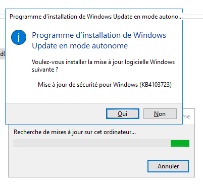 Merci pour votre aide, j’ai testé la première solution, sans succès malheureusement. J’ai du lancer une récupération de Windows vers un point de sauvegarde précédent (Ce que conseillait le site de Windows). A voir quand est ce qu’un patch sortira car, il est impossible de faire ça sur chaque PC car trop de perte de temps