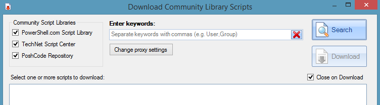 - Téléchargement de scripts communautaires depuis différents sites (PowerShell.com, le Script Center de TechNet et PoshCode).