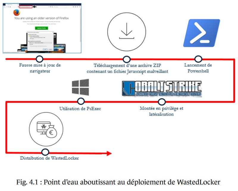 La première étape consiste à distribuer un logiciel malveillant à destination de sa cible. L'ANSSI met en avant le fait que les vecteurs d'infection se sont diversifiés au fil des années. Limité à des e-mails de type phishing ou l'exploitation de RDP mal sécurisé, "ils comprennent désormais d’autres vecteurs possibles tels que les points d’eau, l’exploitation de vulnérabilités ou encore des attaques par chaîne d’approvisionnement."
