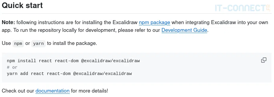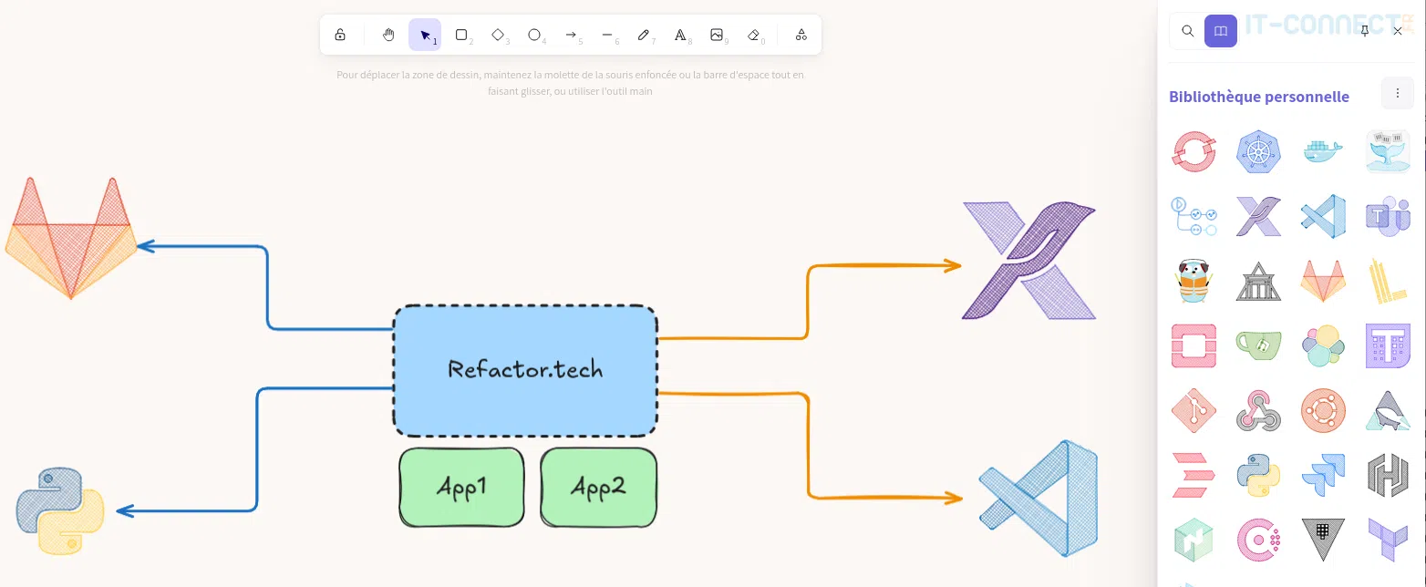 Pour une utilisation classique sur des données non sensibles, vous pouvez utiliser Excalidraw via le site suivant : excalidraw.com.