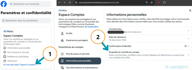- Dans Paramètres du compte, sélectionnez Informations personnelles, puis Propriété et contrôle du compte.