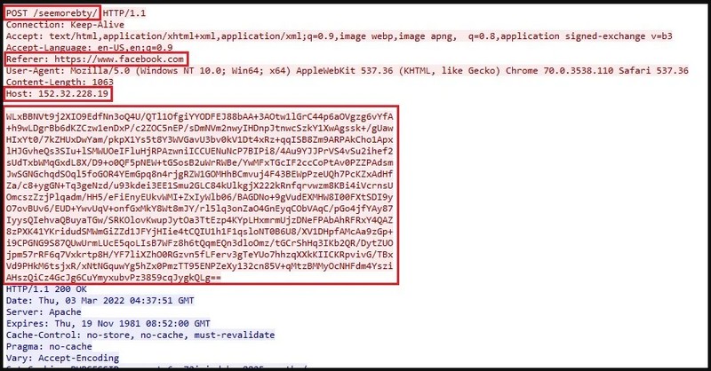 Grâce à cette méthode, le malware parvient à récupérer des noms d'utilisateur et des mots de passe en clair afin de les exfiltrer vers un serveur C2 (Command & Control). Une simple requête POST en HTTP lui permet de soumettre les informations au serveur. D'ailleurs, dans le cadre de la campagne analysée par Zscaler, l'URL utilisée était la suivante : http[:]//152[.]32[.]228[.]19/seemorebty.
