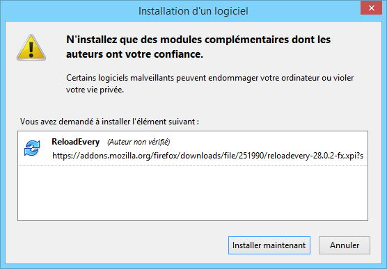 Lorsque l'installation est terminée, vous devez redémarrer le navigateur pour pouvoir utiliser ReloadEvery.