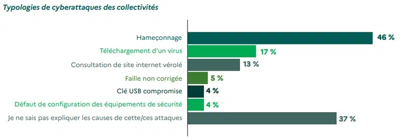 Il faut savoir que deux tiers des élus et des agents estiment que la sensibilisation est un besoin prioritaire. Ceci est compréhensible, car 46% des cyberattaques subies sont liés à de l'hameçonnage (phishing). Toutefois, c'est assez inquiétant de constater que, pour 37% des cyberattaques, la cause est inexpliquée.