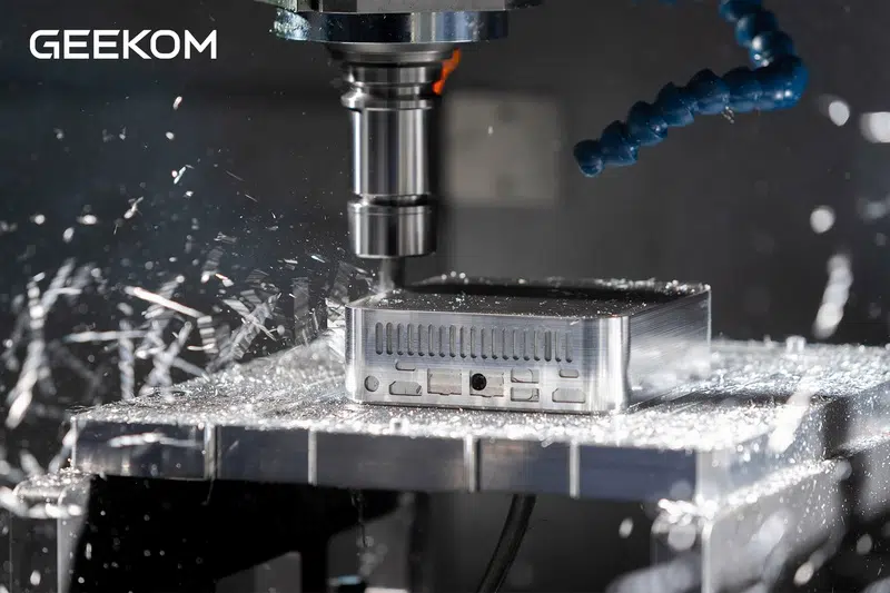 Pour ses mini PC, Geekom mise sur un châssis en métal (cadre et fond). Cette conception promet une résistance à la pression jusqu'à 200 kg et permet de protéger les composants en cas de chute. La coque principale du boitier, quant à elle, peut être en aluminium, en plastique ou un mix des deux, en fonction des modèles et des gammes. Geekom évoque l'utilisation d'un revêtement UV, invisible, pour assurer une protection contre les rayures et l'usure, dans l'objectif d'avoir un aspect neuf plus longtemps.