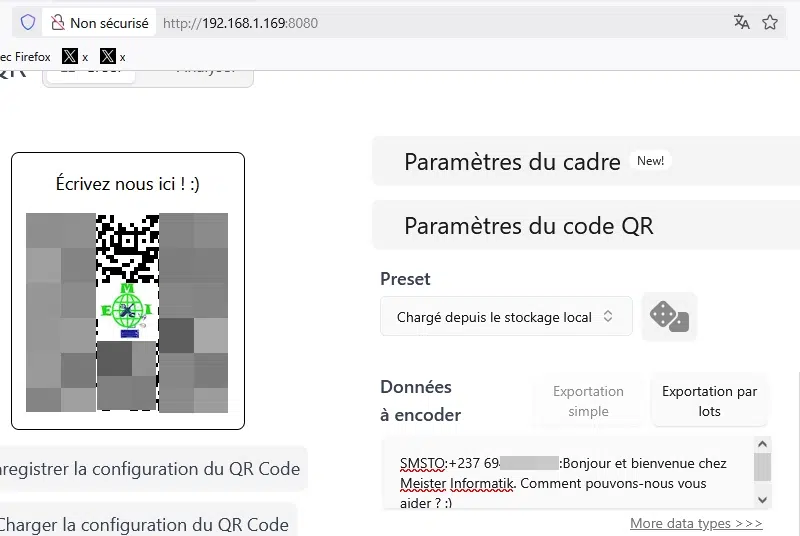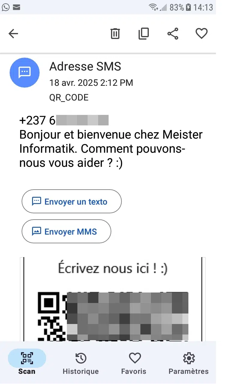 On enregistre le code généré. Si on le scanne, on retrouve le contenu du SMS.