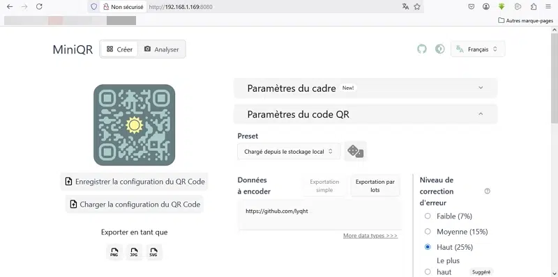 Sachez que la suite d'outils IT-Tools, présentée dans un autre article, intègre aussi un générateur de QR Code, mais il est moins complet que celui-ci.
