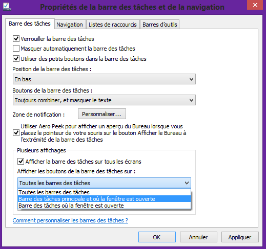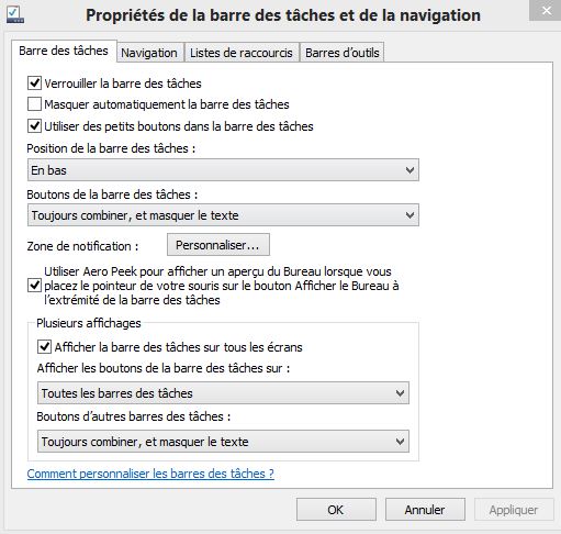 Gérer la barre des tâches multi-écrans sous Windows 8.1