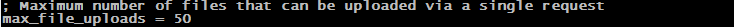 Au passage, on peut aussi modifier la variable qui fixe le nombre de fichiers que l'on peut uploader en une seule requête. Par défaut cette limite est à 20 fichiers. On peut par exemple monter à 50 :